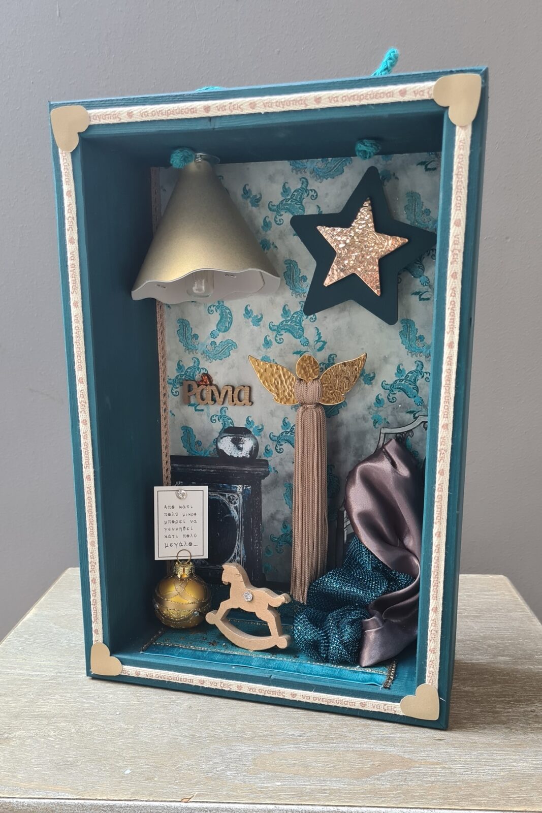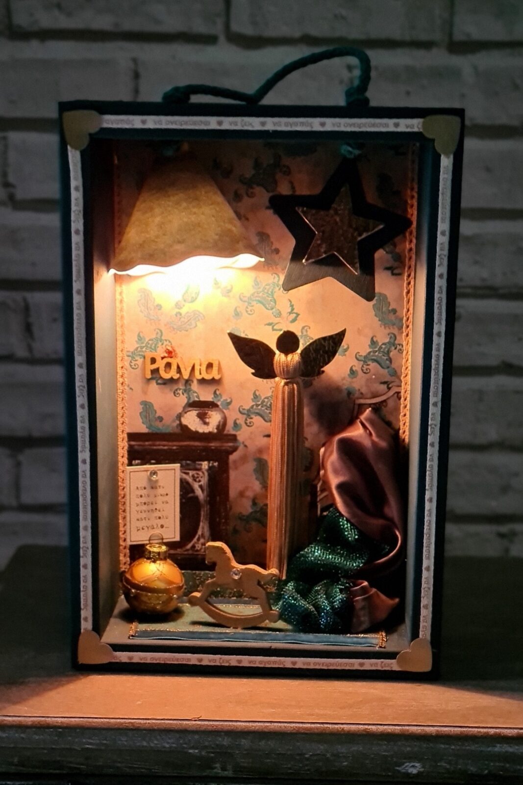 Είναι ιδανικό προσωπικό δώρο που θα μείνει για πάντα, φτιαγμένο με πολλή αγάπη. Τοποθετείται στον τοίχο, σε ράφι ή έπιπλο. Μπορείτε να προσθέσετε ένα όνομα. Περιλαμβάνει λάμπα χαμηλής κατανάλωσης και καλώδιο 1,80m. Παραδίδεται μετά από 5-8 εργάσιμες μέρες σε πολυτελές και καλαίσθητο κουτί συσκευασίας.