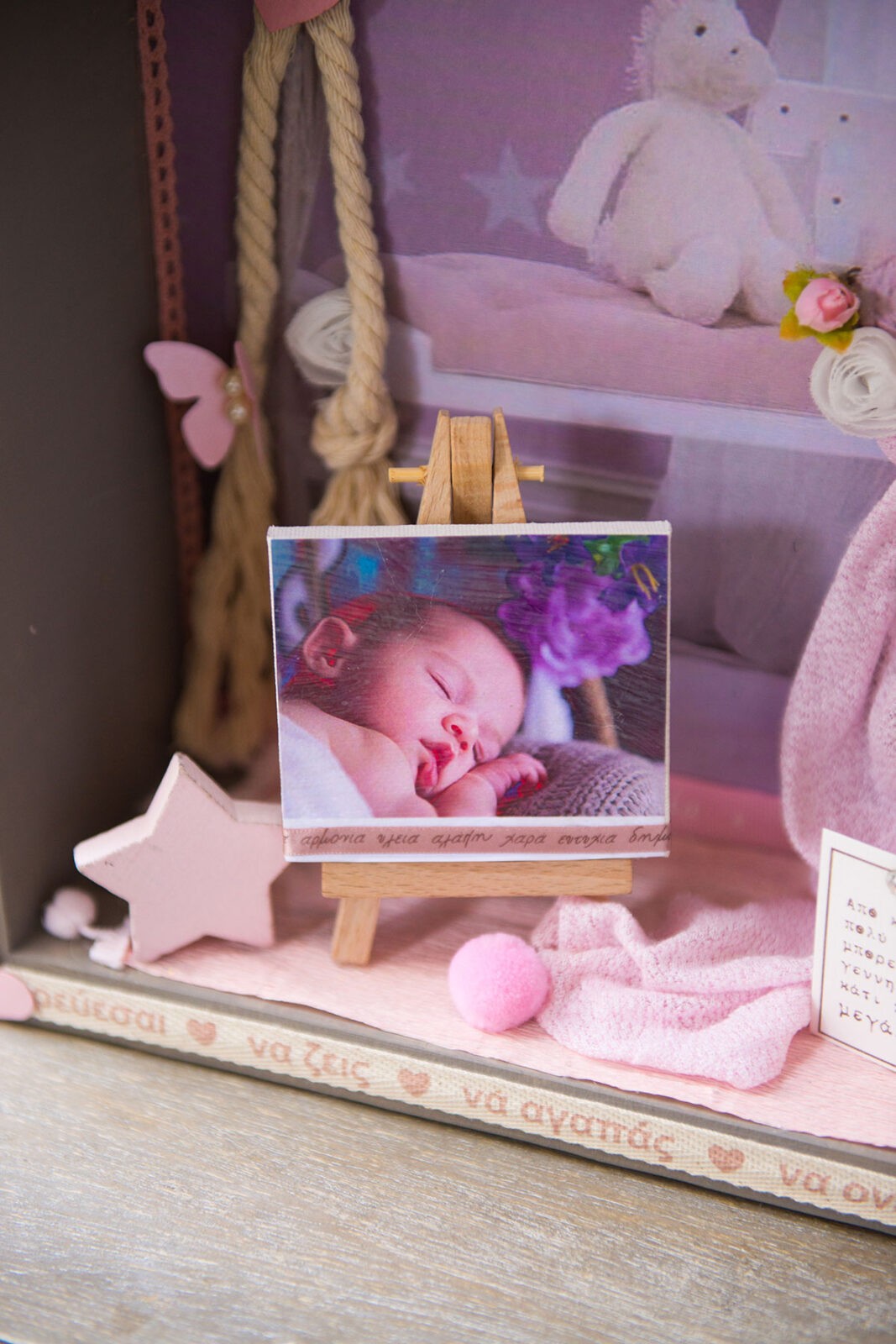 100% χειροποίητο φωτιστικό “Baby photo” κατασκευασμένο από ξύλο, μία όμορφη ιδέα για τη διακόσμηση του δωματίου ενός κοριτσιού, σε φυσικό χρώμα ξύλου, γκρι ή ροζ χρώμα και κανονικό (35*24*11cm) ή μεγάλο (39*26*11cm) μέγεθος.