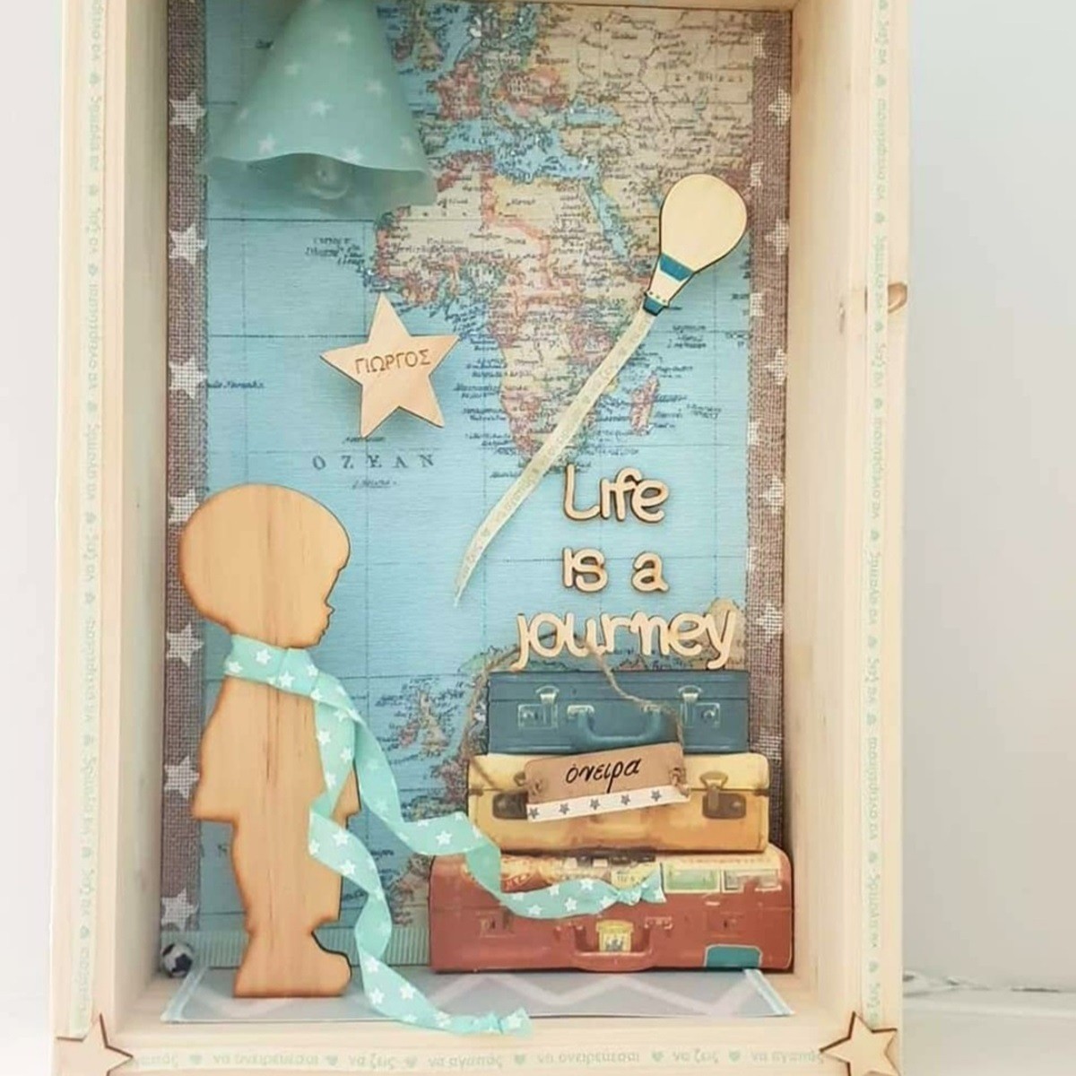 100% χειροποίητο φωτιστικό “Life is a journey” κατασκευασμένο από ξύλο, μία όμορφη ιδέα για τη διακόσμηση του δωματίου ενός αγοριού, σε φυσικό χρώμα ξύλου ή γκρι χρώμα και κανονικό (35*24*11cm) ή μεγάλο (39*26*11cm) μέγεθος.