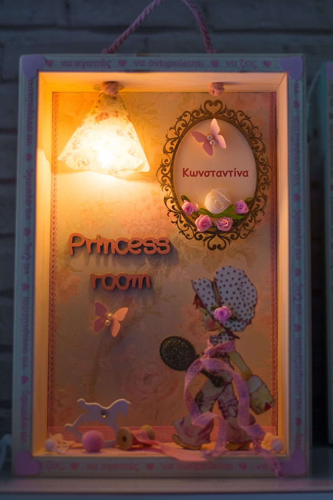 100% χειροποίητο φωτιστικό “Princess room” κατασκευασμένο από ξύλο, μία όμορφη ιδέα για τη διακόσμηση του δωματίου ενός κοριτσιού, σε φυσικό χρώμα ξύλου, βεραμάν ή ροζ χρώμα, και κανονικό (35*24*11cm) ή μεγάλο (39*26*11cm) μέγεθος.